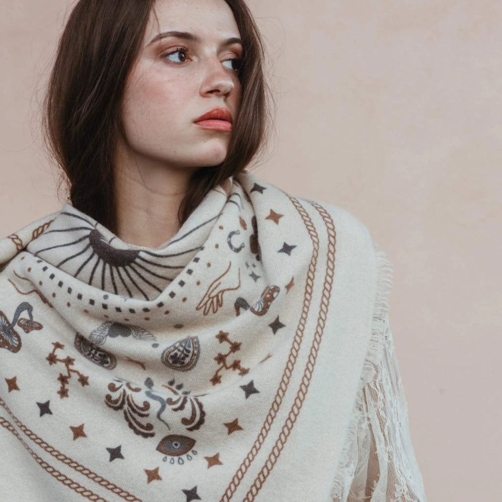 Freya Cosmic Rodeo Cashmere Bandana Sweater Wrap Oat